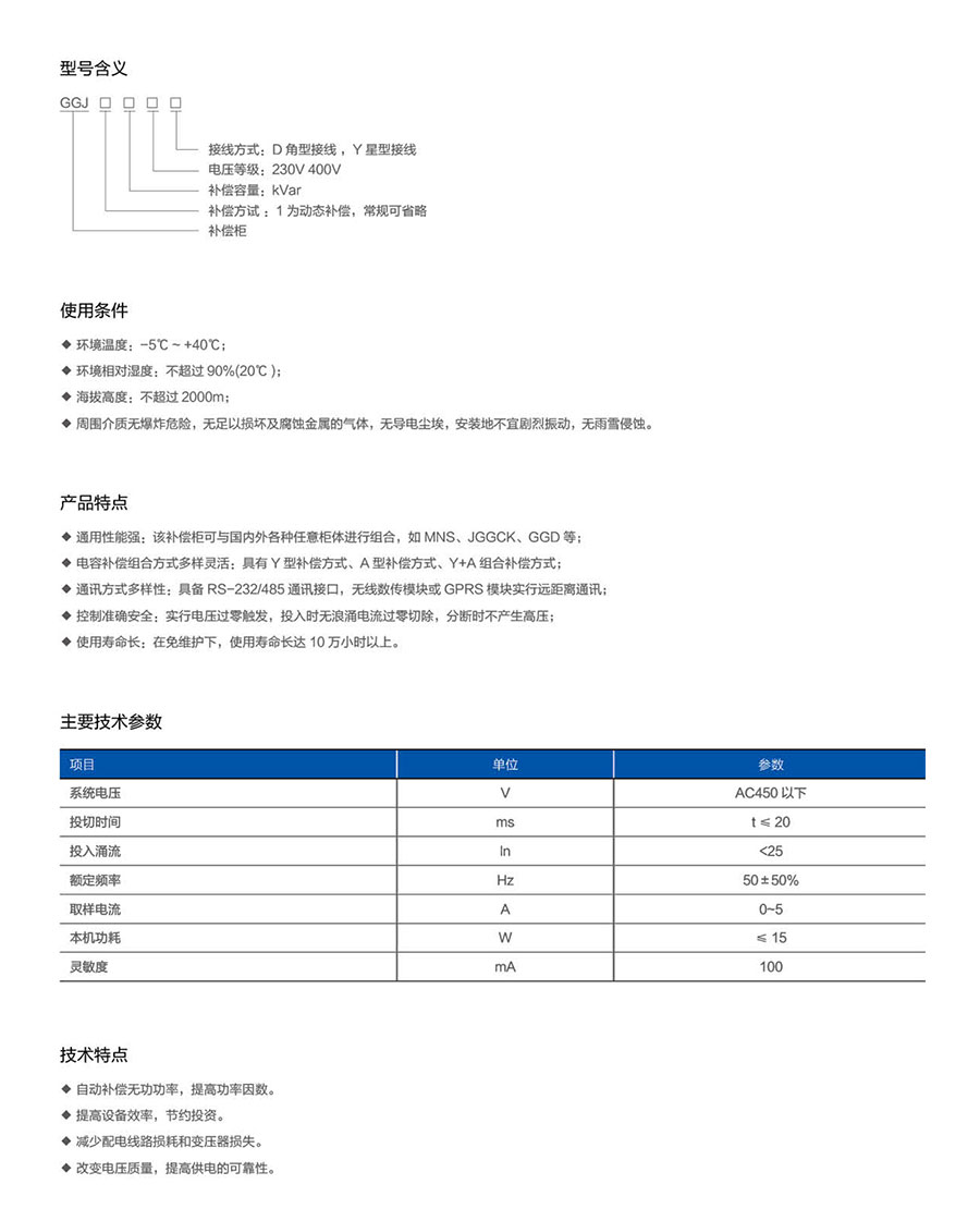 本产品符合:GB/T15576-2008《低压成套无功功率补偿设备》、IEC60439《低压成套开关设备和控制设备》等标准。