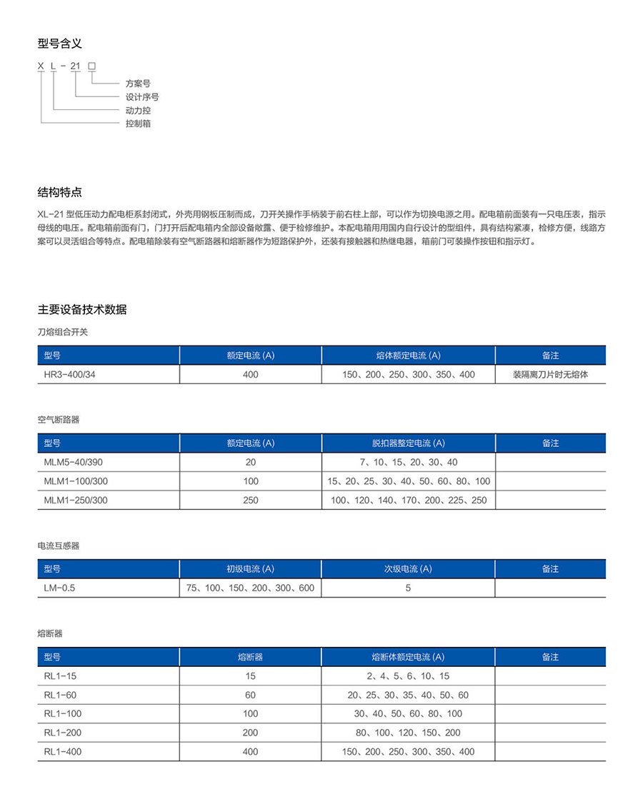 XL-21型低压动力配电柜适用于发电厂及工矿企业中,在交流电压500伏及以下的三相四线系统作动力配电之用。